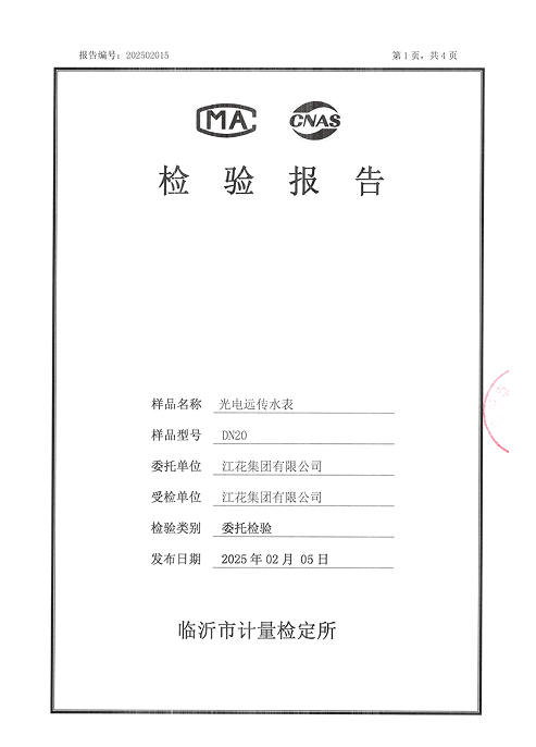 光电远传水表检验报告DN20