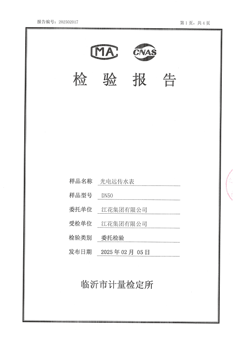 光电远传水表检验报告DN50